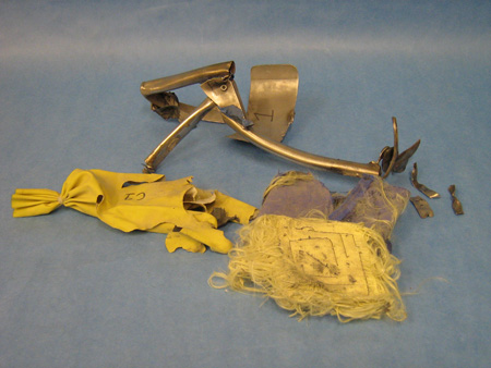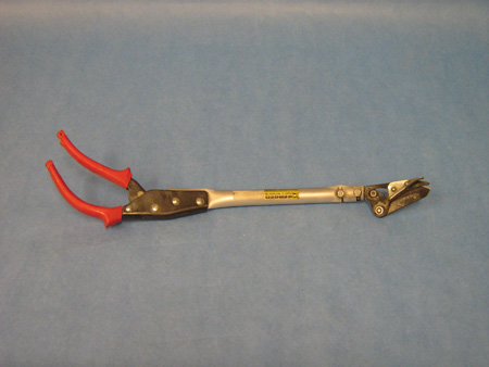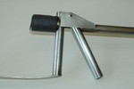 The blast tests pictured below were conducted using various weights of 50/50 PETN/TNT sheet to replicate different sorts of landmine. Foam-stuffed rubber gloves were attached to assess potential damage to clipper operators. The clippers were held near the test charge at the maximum acceptable approach angle. Test results were evaluated on the fragmentation of the tool itself and the blast shield's effectiveness at protecting the rubber glove. Images appear courtesy of Andrew Brooks and Marta Luczynska, and are used with permission. The following document contains more details about the blast tests and the aftermath. (PDF)